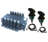 Package that includes steering valve to forest crane with electronic operation (6 proportional functions) (flow 150 l/min), two joysticks and steering cables.