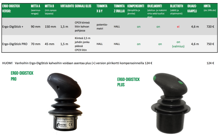 Nyt on mahdollista saada lisätoimintonappuloita ERGO-DigiStick:iin. Lisänappulakotelo varustetaan asiakkaan tarpeiden mukaan. Katso tuote/varaosat-sivua niin näet kuvan ja hintaesimerkin.